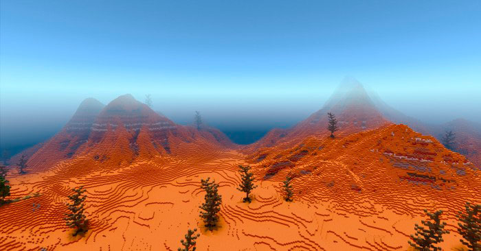 Если вы будите двигаться по руслу реки, то в конечном итоге окажитесь в пустыне, которая больше похожа на марсианские ландшафты из-за красноватого цвета песка. Таким образом данная карта поделена на 2 очень больших биома, где и предстоит вам выжить.