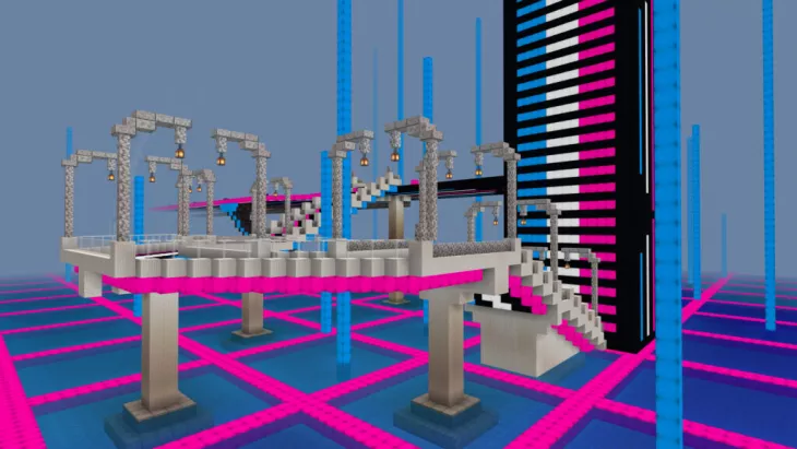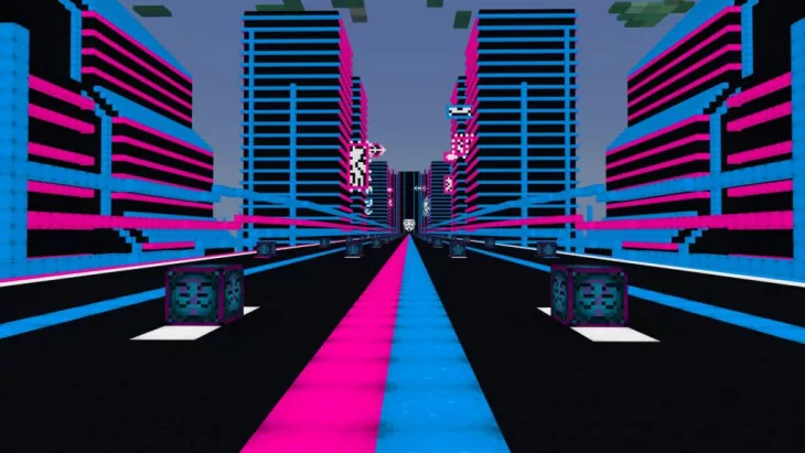 Трасса на серверы: Гонка проходит по мосту, ведущему к серверам Midnight City. На вашем пути будут Лаки Блоки, которые могут как помочь, так и усложнить задачу.