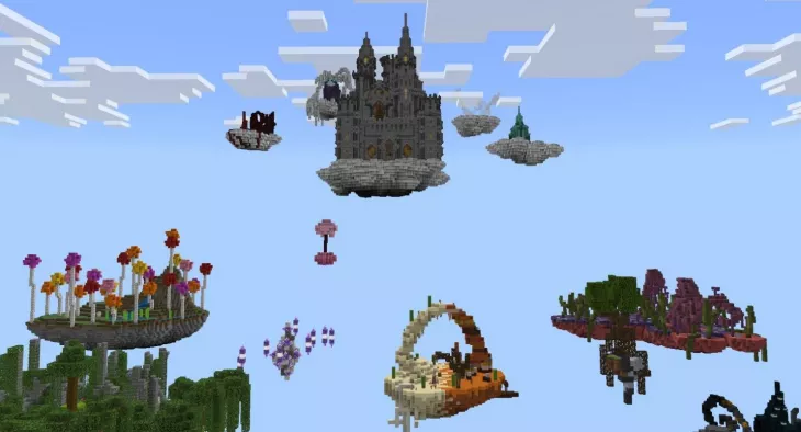 Попробуйте совершенно новое выживание с Skyblock Fantasy – уникальной картой для Minecraft Bedrock Edition, которая переосмысляет классический жанр скайблок.