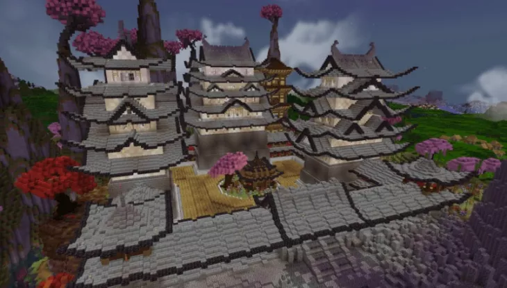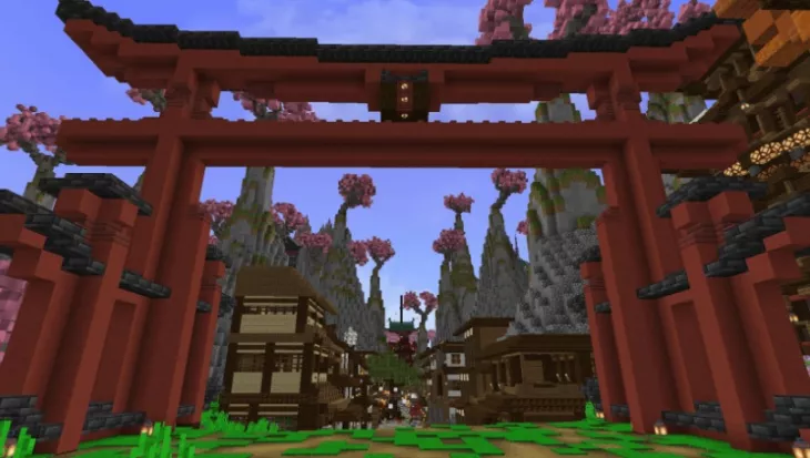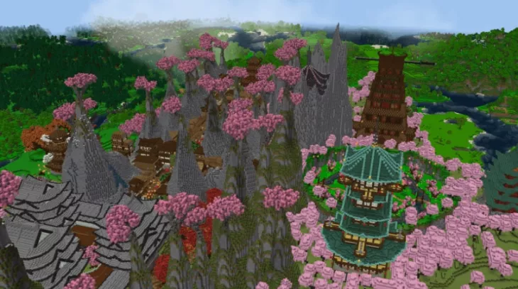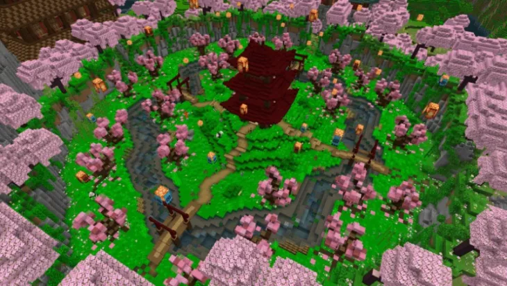 Old Japanese Town in the Cherry Biome — это атмосферная карта для Майнкрафт BE, где традиционная японская архитектура гармонично сочетается с красотой цветущих сакур. Среди деревьев с розовыми листьями раскинулся вручную созданный город с разнообразными постройками — от уютных деревянных домов до величественных многоярусных пагод, каждая из которых проработана с вниманием к деталям.