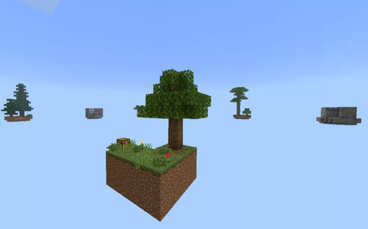 8 островов со структурами: Ручная постройка, скрытая добыча, враждебные мобы и неожиданные ловушки.