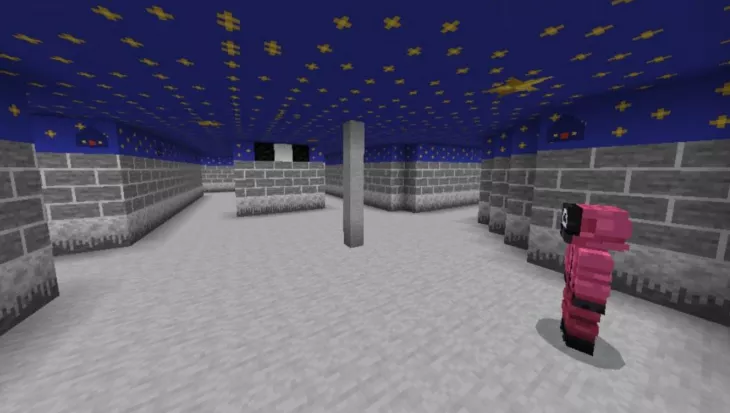 Воспроизведите узнаваемые кадры из сериала с картой Squid Game: Hide And Seek Game для Minecraft Bedrock Edition. Эта мини-игра предлагает уникальную интерпретацию популярного испытания из «Игры в кальмара», перенося игроков в просторную арену, где начинается настоящая охота.