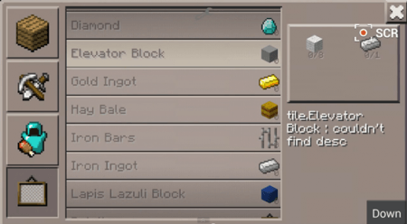 Теперь высокие стены и крутые спуски не будут для вас проблемой, в любой нужный момент вы можете 2 или более блока друг над другом (максимально 16 блоков) , запрыгните на первый блок лифта, после чего нажмите `вниз` (Down) в правом нижнем углу и вас опустит до следующего блока или до самого пола.
