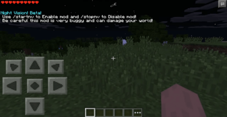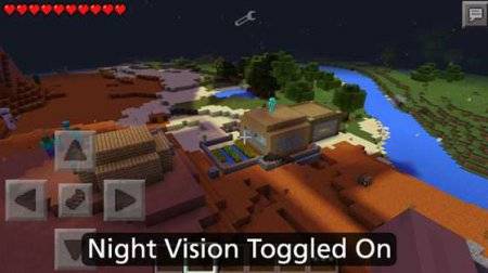 Если вы хотите чувствовать себя ночью, как днем в Pocket Edition тогда Night Vision Mod вам точно пригодится и избавит вас от необходимости вечно носить с собой факелы и освещать ими скудные участки.