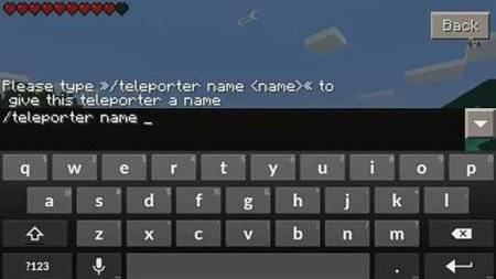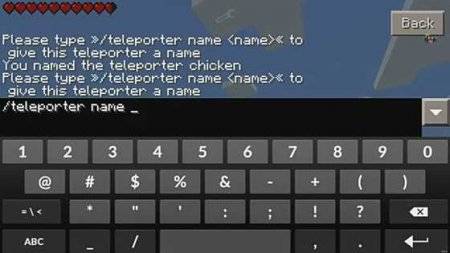 После чего, идем в другое место на карте в MCPE и ставим там еще один блок и присваиваем ему новое имя. Теперь у вас есть уже 2 точки телепорта, между которыми вы будете перемещаться.