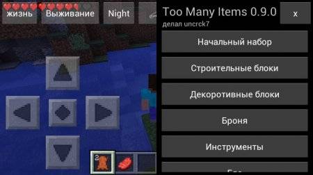 Так же мод TooManyItems (TMI) позволит вам быстро, а главное удобно менять время суток, с ночи на день и наоборот. Список его возможностей очень обширный и позволяет получить только самые полезные и нужные функции в MCPE.