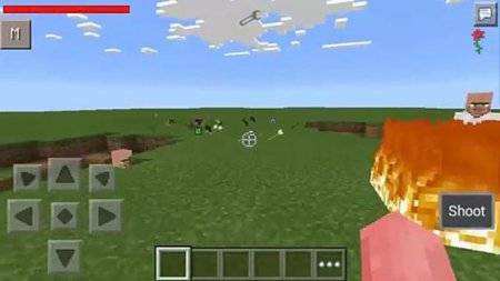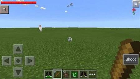 Мод для игры Minecraft PE добавит в игру некоторое оружие, прицелы и внешний вид героя, которые взяты из игры GTA 5. После установки мода по центру экрана у вас появится перекрестие прицела, а с правой стороны экрана кнопка выстрел.