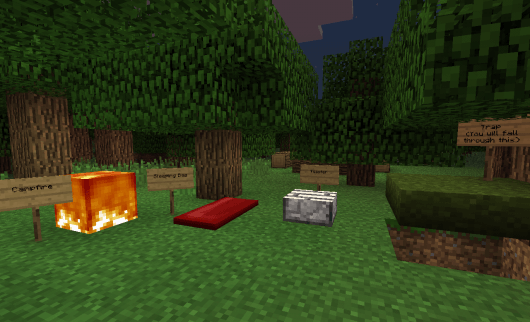 В моде Camping Mod так же есть есть возможность жарить на костре зефир и хлеб, что бы не умереть с голода находясь далеко от дома. В следующих версия мода, разработчики обещают добавить рецепты крафта, медведей и многое другое, что сделает ваши походы более реалистичными и интересными.