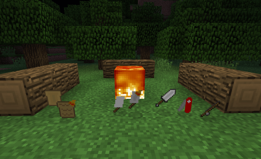- Карманный нож — Наносит 2 ед. повреждения, но при нажатии на бревно вы получите 6 досок и при нажатии по доске Вы получаете 6 палочек.