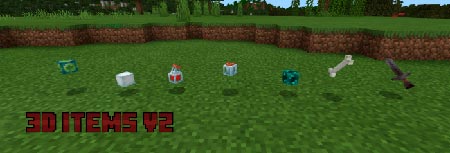 3D Items - мод для Minecraft на Android, который позволяет получить несколько новых красивых текстур. Речь идет о трехмерных моделях текстур различных предметов. В данный момент доступны не все текстуры, однако, в дальнейшем их количество будет расширено. Нововведения будут заметны, когда предмет находится в руках, либо если его выбросить на поверхность.
