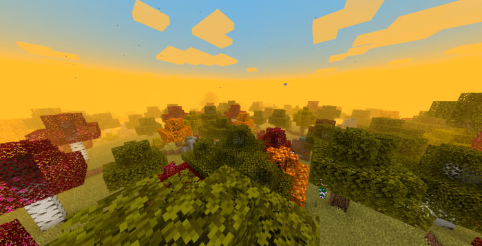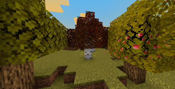 Автор этой модификации решил не менять весь игровой мир, ведь в игре Майнкрафт может быть что угодно и рядом могут соседствовать пустынные и ледяные локации, поэтому данный мод добавит в игру осенний биом.