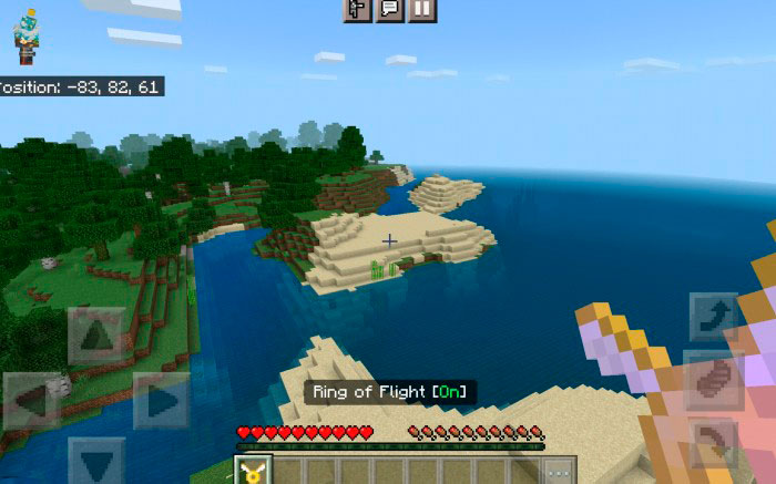 После получения кольца возьмите его в руки, а затем долгим нажатием на экран активируйте его. Что бы взлететь дважды нажмите на кнопку прыжка.