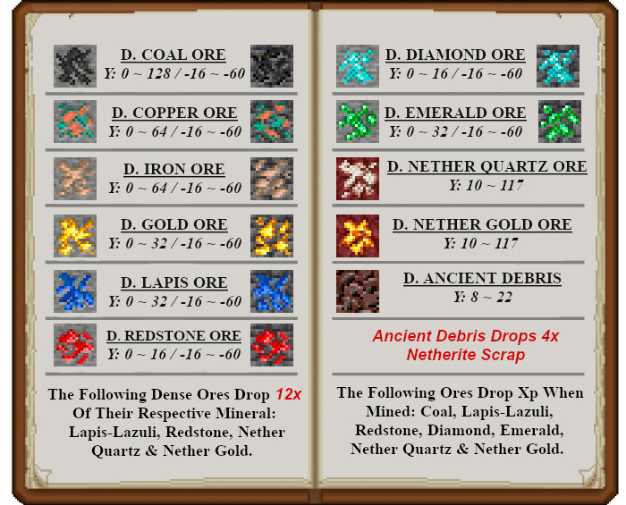 У каждой новой руда есть свой диапазон залегания, который вы можете посмотреть на картинке ниже.