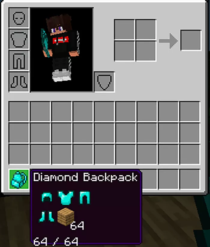 Для того, чтобы воспользоваться рюкзаком откройте инвентарь нажмите на него или выберите предмет, который надо поместить в него. Это дополнение отлично подойдёт тем игрокам, кто часто переезжает или имеет большое количество ресурсов, которые надо перемещать между разными базами.