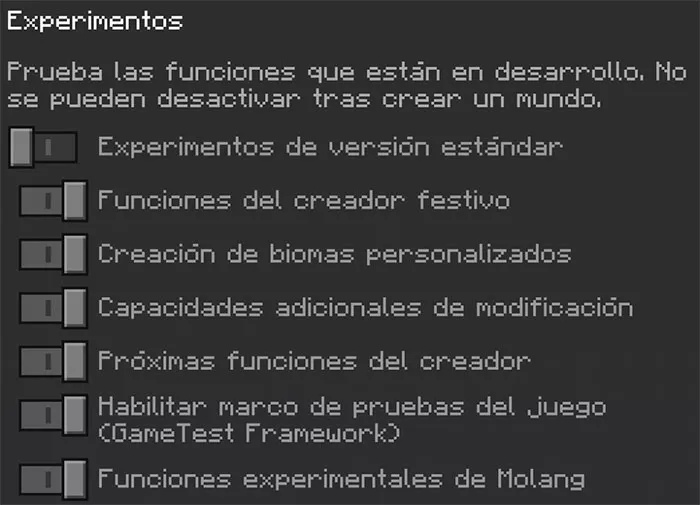 ВАЖНО!!! Для работы мода включит все функции экспериментального режима игры, как это показано на картинке ниже!!!