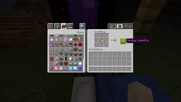 Новый костёр будет создаваться из обычного костра и не будет требовать дополнительных материалов. Эффект исцеления будет накладываться на все объекты, которые находятся в радиусе 4 блоков. Таким образом вы не только сможете восстановить своё здоровья, но и вылечить вашего питомца.