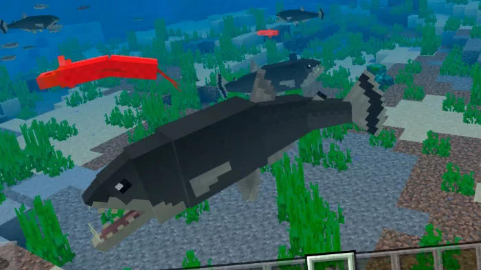 На данный момент в модификации вы сможете видеть в игре 5 новых рыб, среди которых будут сомы-убийцы, суки и другие хищники, которые водятся в пресноводных водоёмах. Как говорилось выше некоторые рыбы смогут атаковать игрока, на данный момент она всего 1 — это сомы. Других рыбы будут атаковать животных поменьше, например кроликов или черепах.