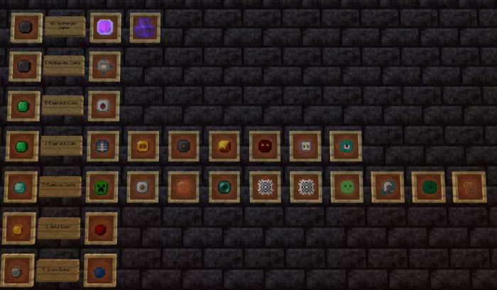 Вышеуказанные монеты можно получить только в торговле с сельскими жителями. Для добычи редких монет отправляйтесь на охоту. У каждого мода будет своя монета, которую довольно сложно получить. Так же у монет из существ есть свой обменный курс.