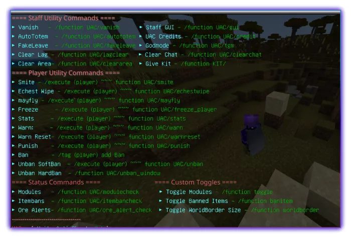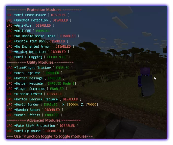 - Защита от недопустимых предметов (удаляет барьеры, коренную породу, рамки портала и т.д. из инвентарей игроков)