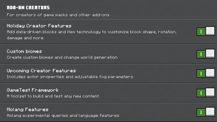 Все то же самое, что и в Java Edition, очевидно, с ограничениями, которые есть у бедрока.