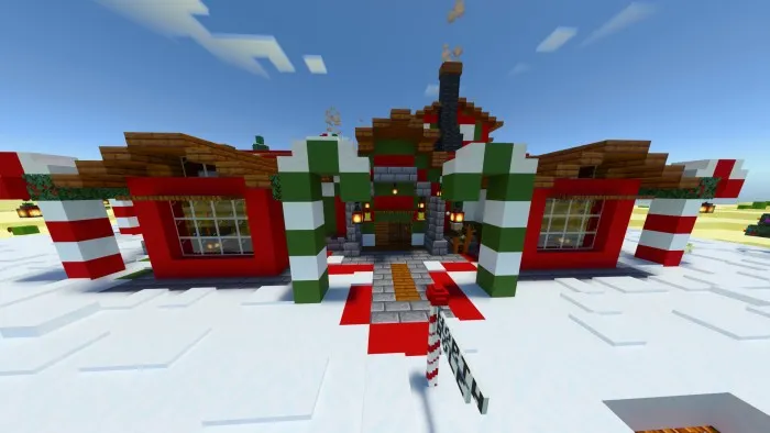 Вы также найдете несколько рождественских елок вокруг. Вы можете срезать их и разместить где угодно. Они будут появляться в одном из четырех размеров. Леденцы и милые пряничные домики.