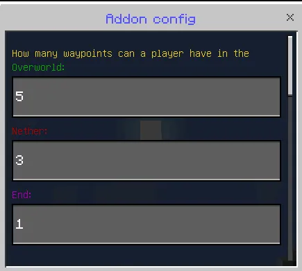 🔧Сколько путевых точек может иметь игрок, отдельный лимит для каждого измерения. От 0 до 999, если ноль, игрок не может создать путевую точку в этом измерении.