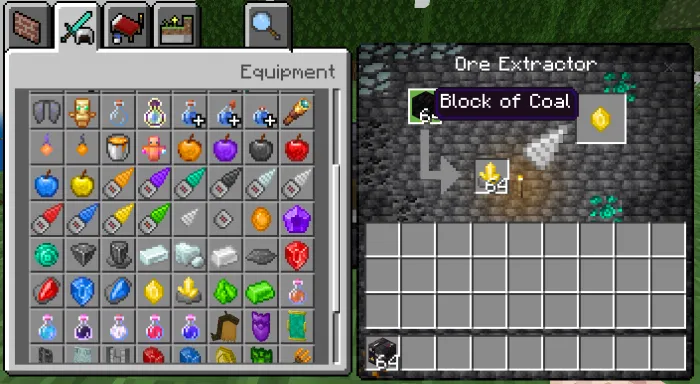 Эта таблица является экстрактором руды, она позволит вам извлекать куски камня, которые есть у некоторых руд этого аддона, когда они извлекаются из руды, эта таблица также имеет вариацию пользовательского интерфейса в зависимости от типа сверла, которое вы используете для ремесла.