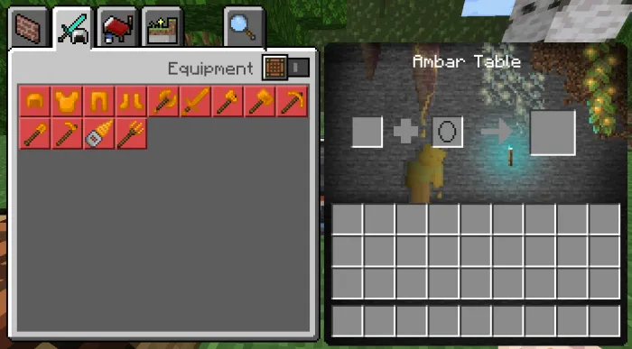 Эта таблица больше всего послужит для получения янтарных доспехов, которые, несомненно, являются лучшим материалом для доспехов и инструментов.