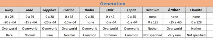 Эта руда имеет нормальную генерацию, то есть ее не легко и не сложно добыть, она намного лучше родийовой, ониксовой и топазовой руды как по урону, так и по прочности.