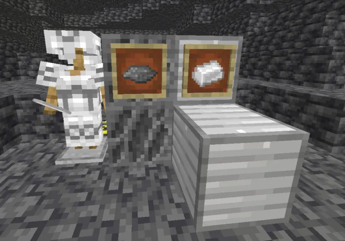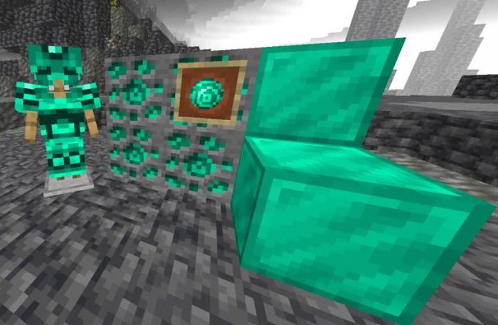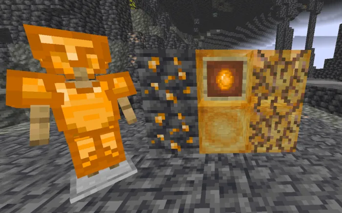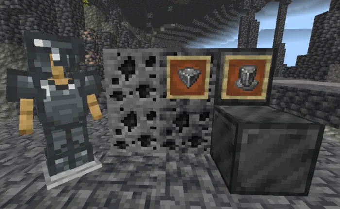 Эта руда является одной из самых распространенных, даже поэтому она лучше камня и похожа на железо по урону и превосходит по прочности, но не в добыче, этот минерал также используется для торговли с сущностью, которая добавляет аддон.