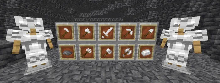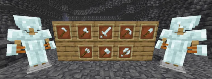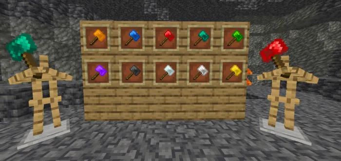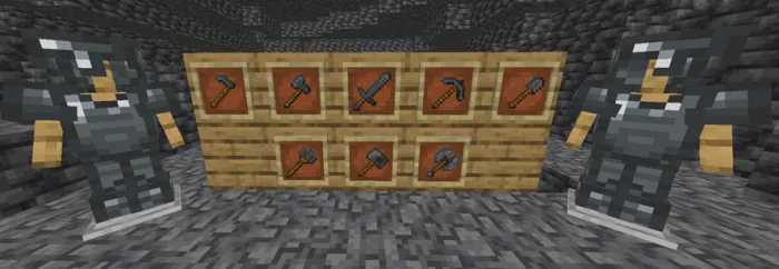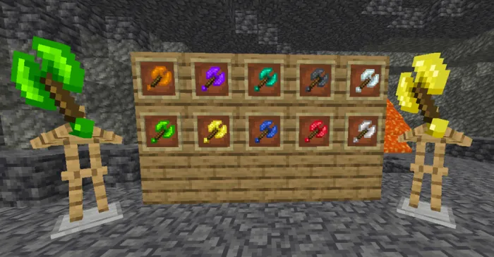В этой версии было добавлено в общей сложности 5 чар для оружия ближнего боя, 2 для кирок и 1 для топоров, и вы можете предложить больше чар на сервере разногласий, если вы заинтересованы.