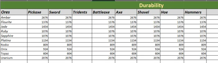 Это будет второй лучший минерал для брони, он один из самых устойчивых, оружие из этого минерала даст яд при попадании в другие объекты, эту руду можно добывать только следующими кирками: Янтарная кирка, Флуоритовая кирка, Нетеритовая кирка, Урановая кирка.