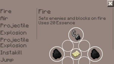 - Заклинание воздуха — Отталкивает всех мобов в радиусе 10 блоков