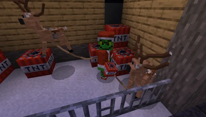 По сути, это означает, что персонажи со всего рождественского спектра были брошены в ваш мир Minecraft, вы найдете их повсюду и в каждом биоме. Используя рождественский контракт, полученный либо от эльфа, либо от робота-эльфа, вы можете приручить этих персонажей и получить они сражаются вместе с вами. Каждый персонаж будет иметь небольшую цитату, чтобы сказать время от времени и их.