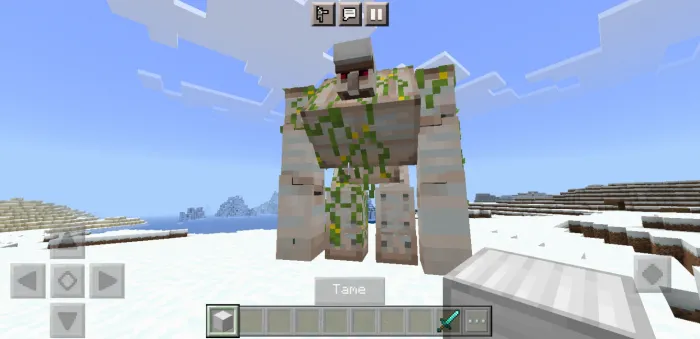 Железный голем-мутант. этот ироничный моб был самым сильным мутантом, и у него было много сил, чтобы защитить жителей деревни. Вы можете приручить или накормить его железным блоком, железным слитком и железными самородками и ездить верхом, если вы хотите остаться этим мобом, вы можете дать ему отдохнуть, и он заснет, надеюсь, вам понравится этот железный голем-мутант :).