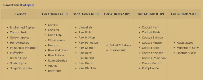 Игроки теперь восстанавливают точное количество здоровья, а не получают эффект регенерации. Максимальный размер стопки большинства продуктов питания, которые не имели дополнительных функций, таких как плоды хоруса, был уменьшен до 1. Это определяющее изменение игрового процесса, поскольку еда теперь будет оказывать гораздо большее влияние на то, как игрок перемещается по миру. Мобы, из которых выпадала съедобная еда, теперь сбрасывают не более 1 стека, независимо от чар мародерства. Из-за особенностей функционирования торта его нельзя было включить в эту переработку, и он по-прежнему непригоден для использования. Я буду работать над поиском решения этой проблемы в будущем.