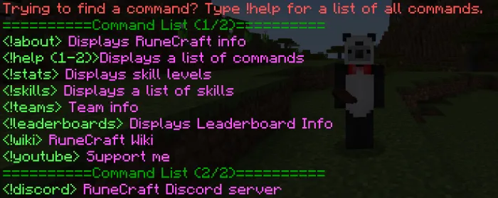 Пользовательские команды — это способ для игроков быстро получить доступ к информации без необходимости открывать вики или задавать вопрос на сервере разногласий. В Руническом ремесле много чего происходит, поэтому краткие описания тем, которые могут сбивать с толку, и общая информация о том, как разблокировать вещи, являются важной функцией. Для начала введите "!help"