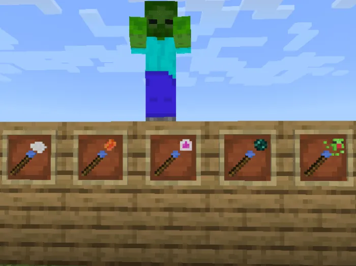 Призывной посох. Призывает зомби, который сражается со всеми вражескими мобами и даже работает с мобами из других модов.