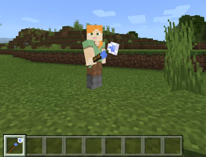 Посох левитации. Разработчик планирует добавить больше посохов, но пока разработчик добавил один, который заставляет всех мобов поблизости парить в небе в течение 10 секунд. Не включая игрока. Рецепт находится в таблице крафта.