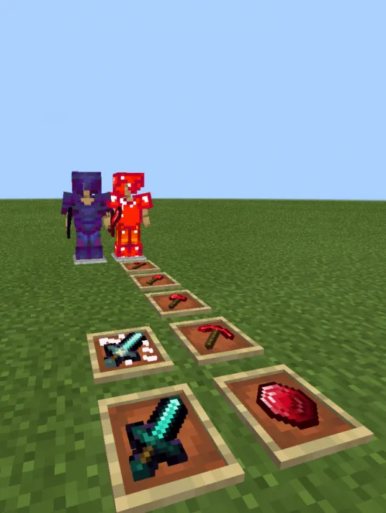 В этом моде разработчик добавил целый набор инструментов. 7 новых руд и новый слиток. Несколько новых функциональных блоков. Также 8 новых мечей и 7 посохов. Все рецепты можно найти в меню ремесла.