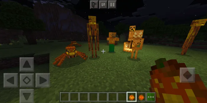 Призрачные мобы: в том числе вариант для Зомби, Скелета, Паука, Крипера и Эндермена, эти монстры, похожие на тыквы, сильнее, чем их альтернативные версии, и имеют уникальный дроп, новые конфеты . Иди преследуй их и получай угощения! Нерестятся в пустынях.