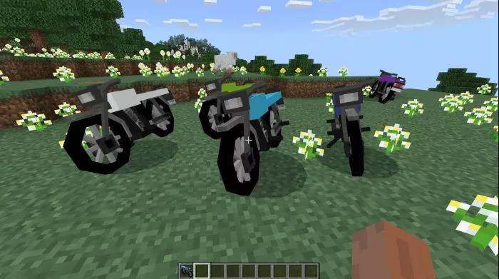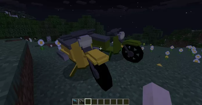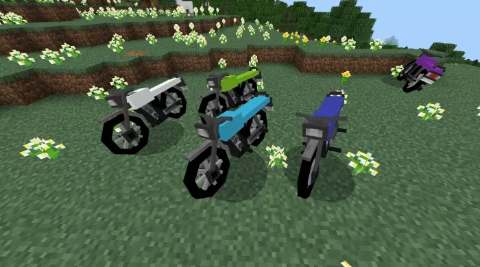 Мотоцикл: Пронеситесь по миру Minecraft на этом скоростном и универсальном мотоцикле, который идеально подходит для городских исследований или неспешных поездок по сельской местности. Независимо от того, отправляетесь ли вы в одиночку или с друзьями, мотоцикл предлагает сбалансированное сочетание скорости и маневренности.