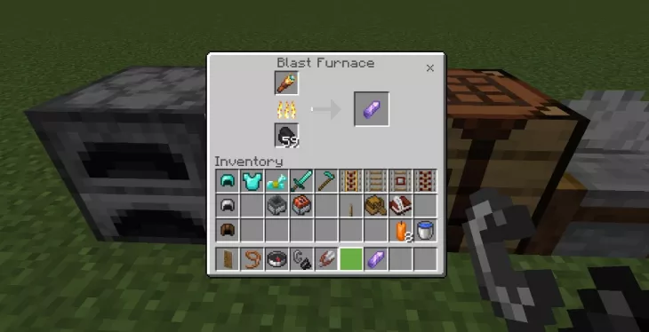 - Железные предметы: Превращайте железную броню, инструменты и конскую броню, а также различные железные объекты, такие как щиты, подзорные трубы, котлы, компасы, кремень и сталь, вагонетки, железные решетки, двери, нажимные пластины, люки и ножницы обратно в железные слитки.