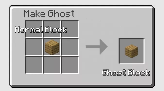- Неотличимы от оригинала: Призрачные блоки сохраняют текстуры из ванильной версии игры, идеально сливаясь с вашим миром. Они неотличимы от обычных блоков, делая ваши ловушки и секретные проходы действительно незаметными.