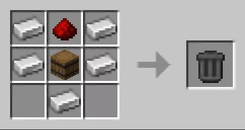 - Рецепт крафта: Скомбинируйте 1 бочку и 4 железных слитка для создания Железной мусорной корзины.