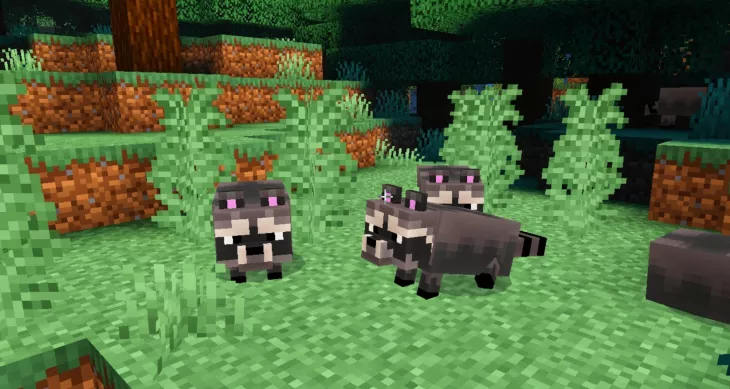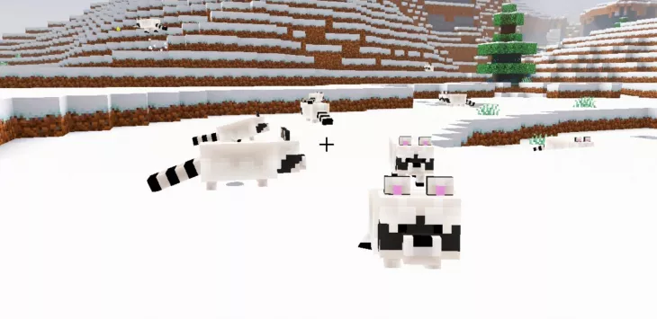 - Варианты биомов: Еноты меняют цвет в зависимости от биома, в котором появляются: серый, белый, чёрный или коричневый.