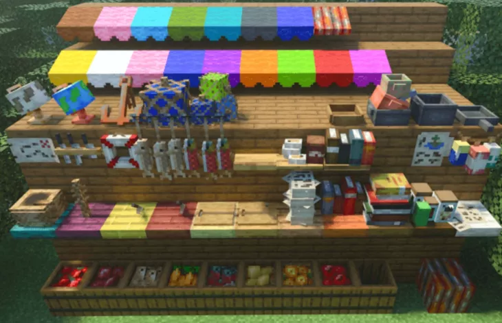 Dusty Decorations добавляет множество декоративных блоков в стиле деревень и портов, помогая сделать ваш мир более живым. Здесь есть бочки с едой, висячая рыба, разноцветные буи, разбросанные бумаги, полки с книгами и банками и многое другое. У многих блоков есть случайные текстуры, чтобы постройки выглядели естественнее, а некоторые, например верёвки, можно использовать для лазания.