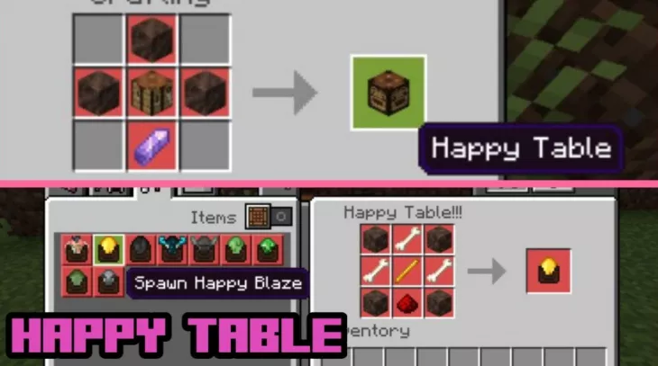 Чтобы создавать этих счастливых мобов, понадобится Стол Счастья — новый верстак, с помощью которого можно превращать обычных мобов в добрых. Для его крафта потребуется 1 верстак, 3 блока почвы душ и 1 аметист.