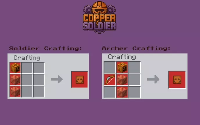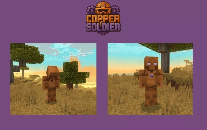Добавьте в Minecraft BE совершенно новый уровень защиты с модом Copper Soldier. Этот аддон позволяет создавать верных медных воинов, которые будут охранять вашу базу от враждебных мобов — всё, что нужно, это медные блоки и осколки аметиста.