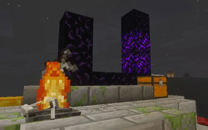 Создайте костёр, используя ресурсы, доступные после посещения Незера: песок душ, кости и железный меч. После установки костра вы сможете дать ему имя, создав точку телепортации. Как только вы разместите несколько костров, при взаимодействии с любым из них откроется список известных мест — выберите нужное и телепортируйтесь.